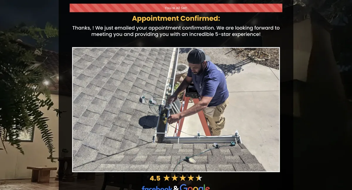 A complete turnkey lead generation and customer nurturing system for Light Hanging Services